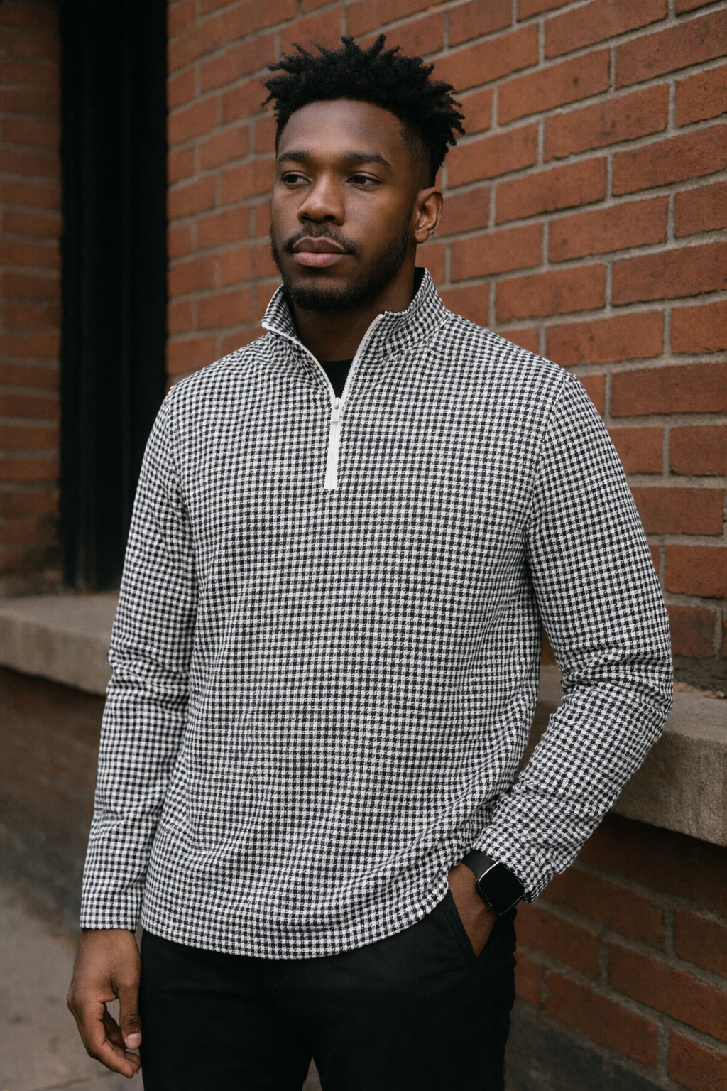 RF-Wear Quarter Zip Houndstooth Top - Black/White